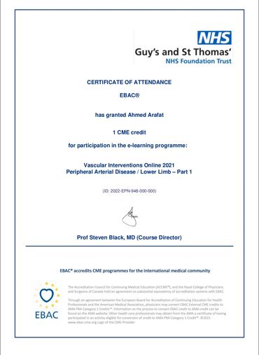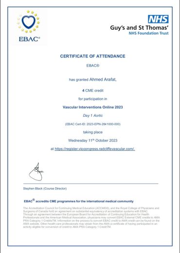 دكتورأحمد عرفات استشارى جراحة الأوعية الدموية عضو كلية الجراحين الأمريكية